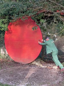 Baron Süsskind poussant l’énorme porte-disque menant au jardin perse © B.de Cosnac