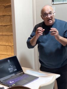 L’un dés héritiers de l’artiste Barriot expliquant l’œuvre © B. de Cosnac